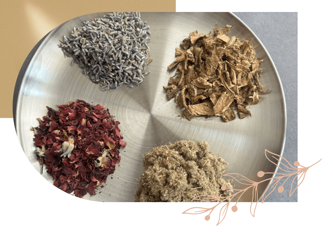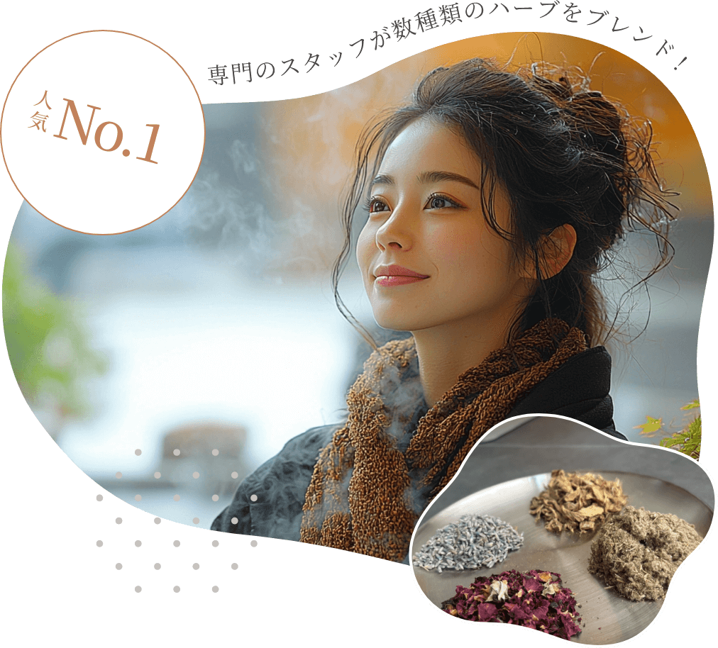 粉末状のよもぎをハーブとブレンドし、体の内側からやさ